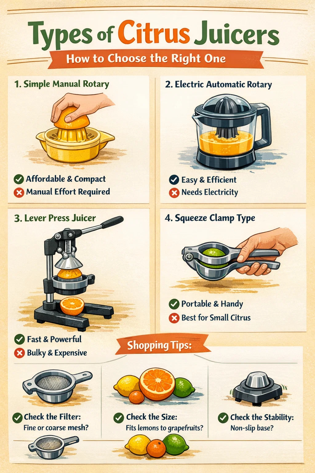▲ عدة أنواع شائعة من عصارات الحمضيات في السوق